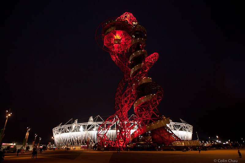 The 80,000-seater Olympic Stadium overshadowed by the Orbit, a 115m tall free-standing steel red sculpture (complete with observation deck at the top). On a clear night, the Orbit is visible up to 10km away.
